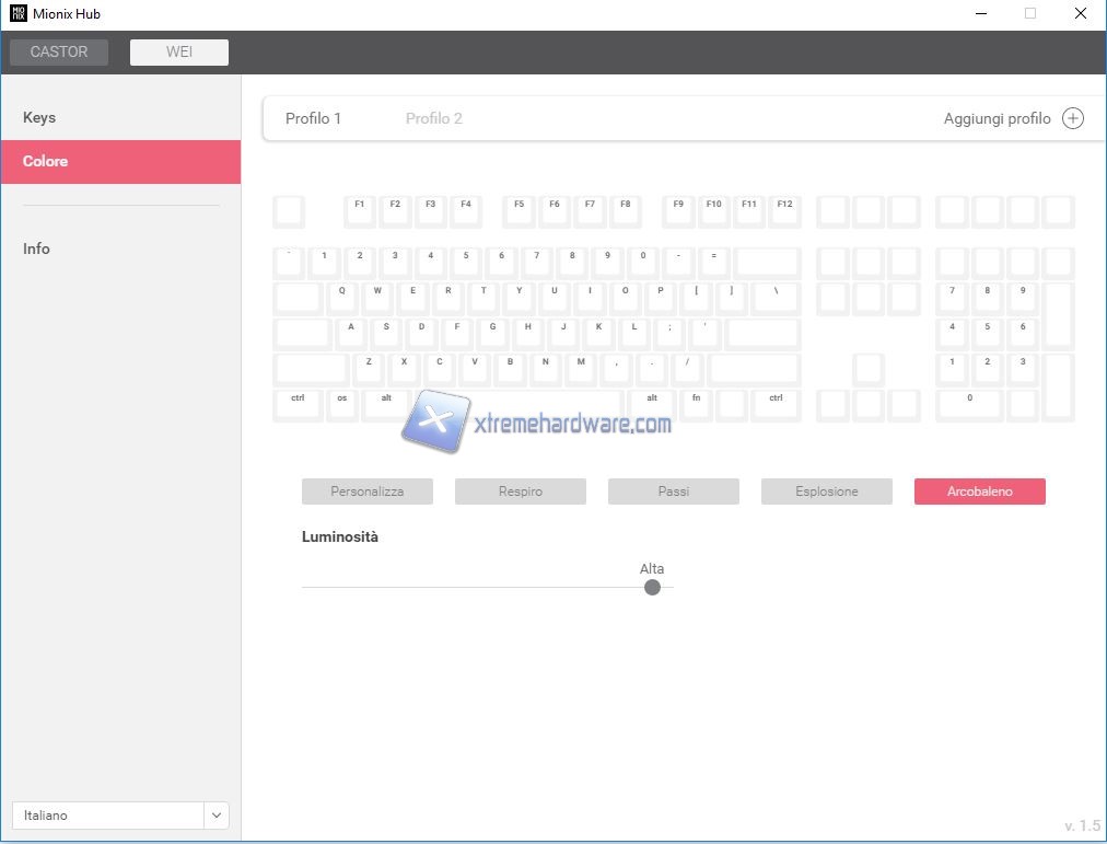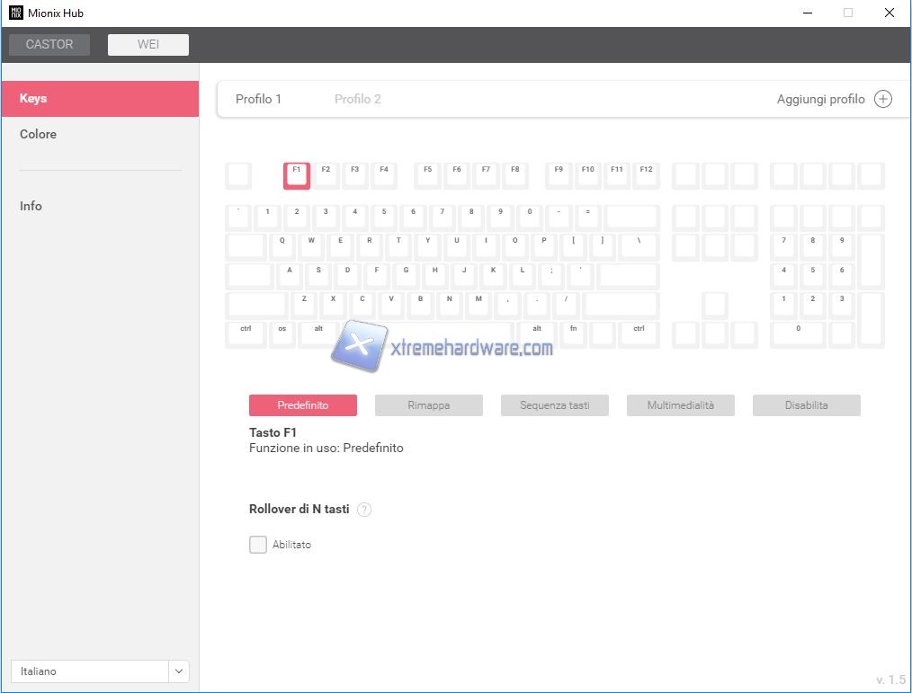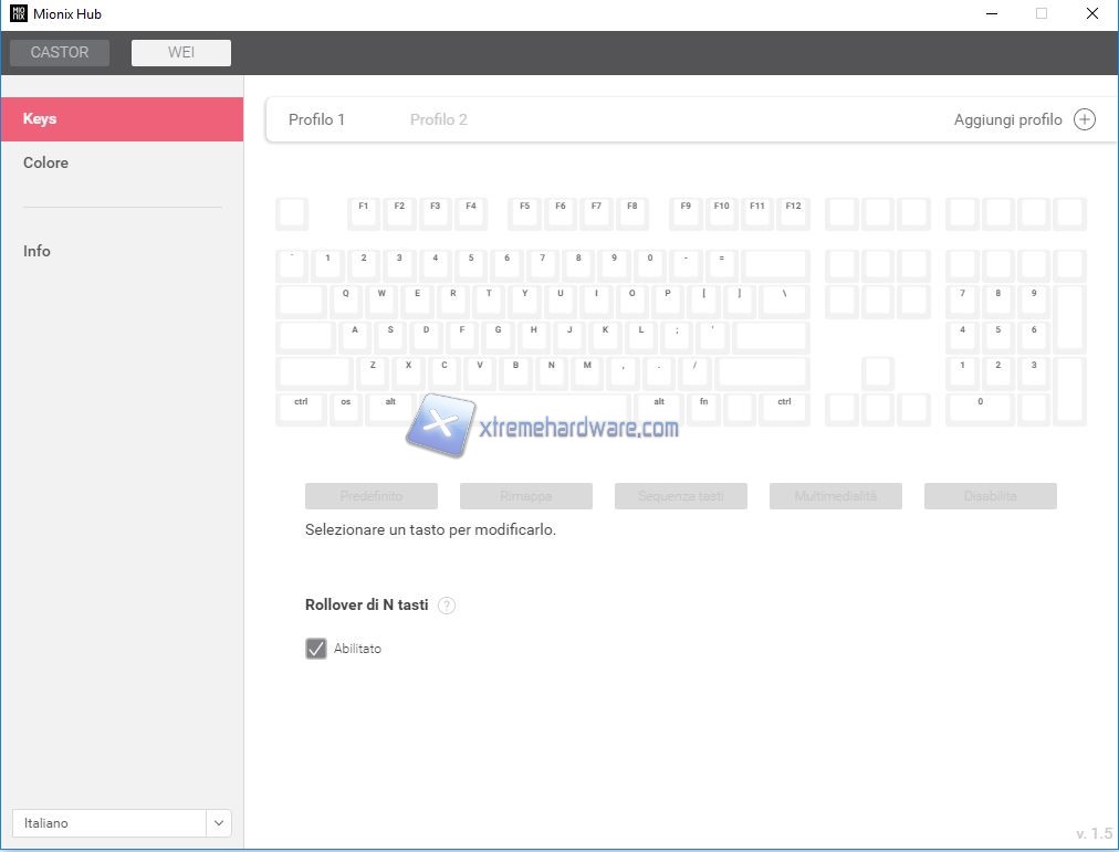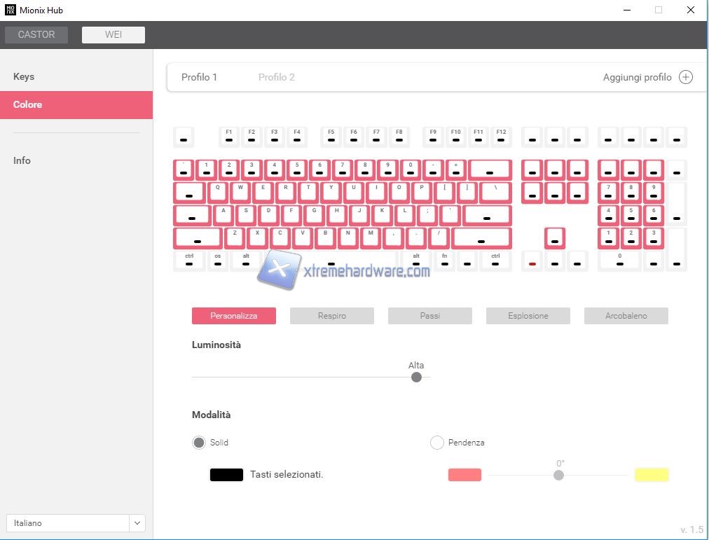 Passiamo ora a dare un rapido sguardo alle impostazioni che vengono messe a disposizione della tastiera Mionix Wei.