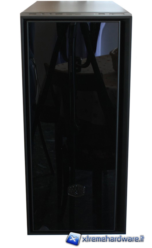 La parte frontale del Silencio ha un aspetto elegante e sobrio ed è realizzata in plastica lucida finemente lavorata. Nella sezione inferiore è presente, in rilievo, il logo Cooler Master.