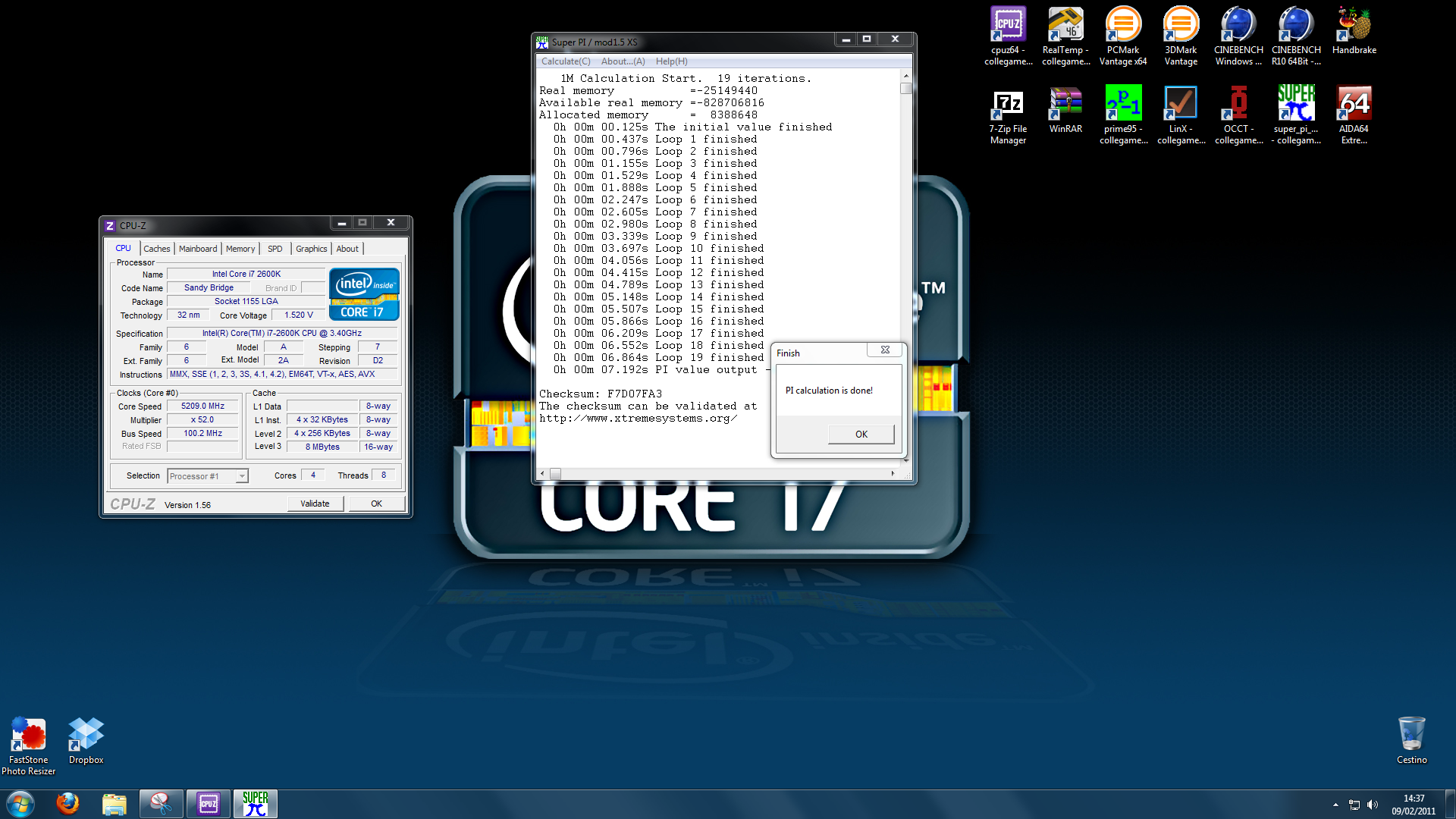 Una volta ottenuto uno score Rock Solid (di tutto rispetto ma oramai d’abitudine per questo genere di processori) ci siamo dedicati ad una serie di “Quick Tests”. In questo caso abbiamo adoperato il tool “SuperPI’ riuscendo a concludere il test alla frequenza di 5200mhz!